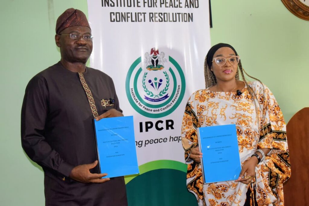 The Institute for Peace and Conflict Resolution (IPCR) has signed six strategic Memoranda of Understanding (MOUs) with key stakeholders, reinforcing its commitment to promoting sustainable peace, security, and development across Nigeria and the wider Sahel region.